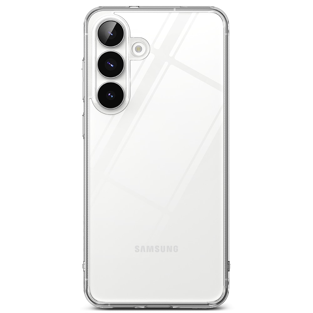 Genomskinligt skal från Ringke till Samsung Galaxy S25 FE. Ringke Fusion ger din telefon optimalt skydd nästan utan att synas. För bästa skydd har skalet en stötdämpande ram som absorberar fall och en baksida i hård polykarbonat.