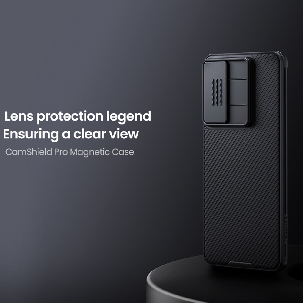 Skyddande skal med kameraskydd och MagSafe med snygg design till Samsung Galaxy S25 Edge från Nillkin. För att skydda kameran mot repor och skador har skalet en lucka som enkelt skjuts framför kameran när du inte använder den.